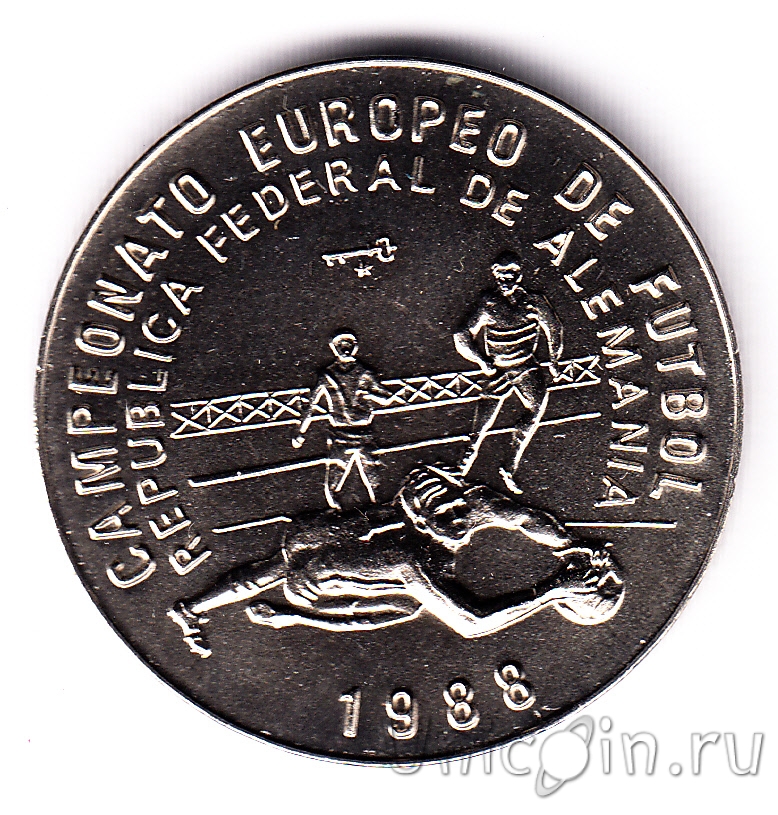 Куба 1 песо 1988 г. Чемпионат Европы по футболу 1988, ФРГ. Вратарь