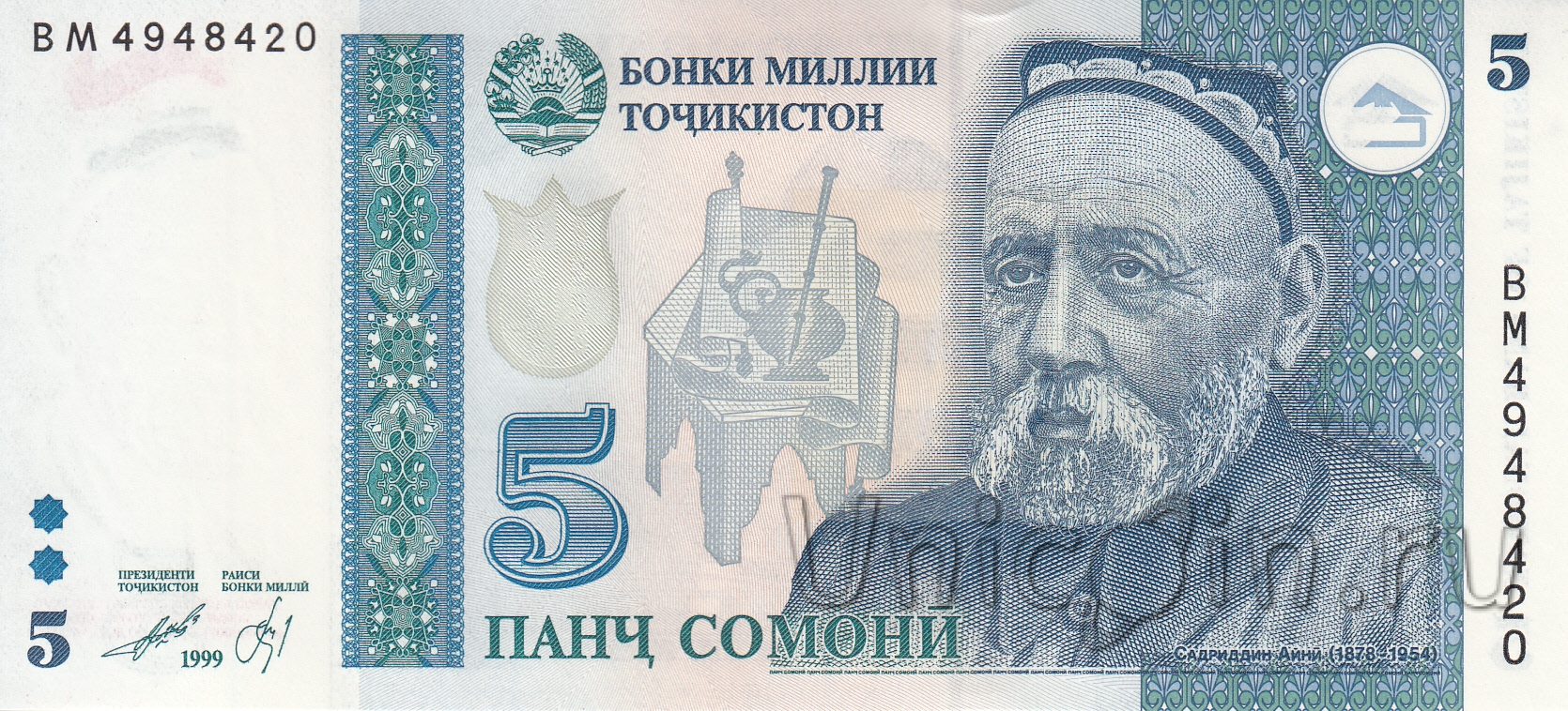 Таджикистан 5 сомони 1999 г.