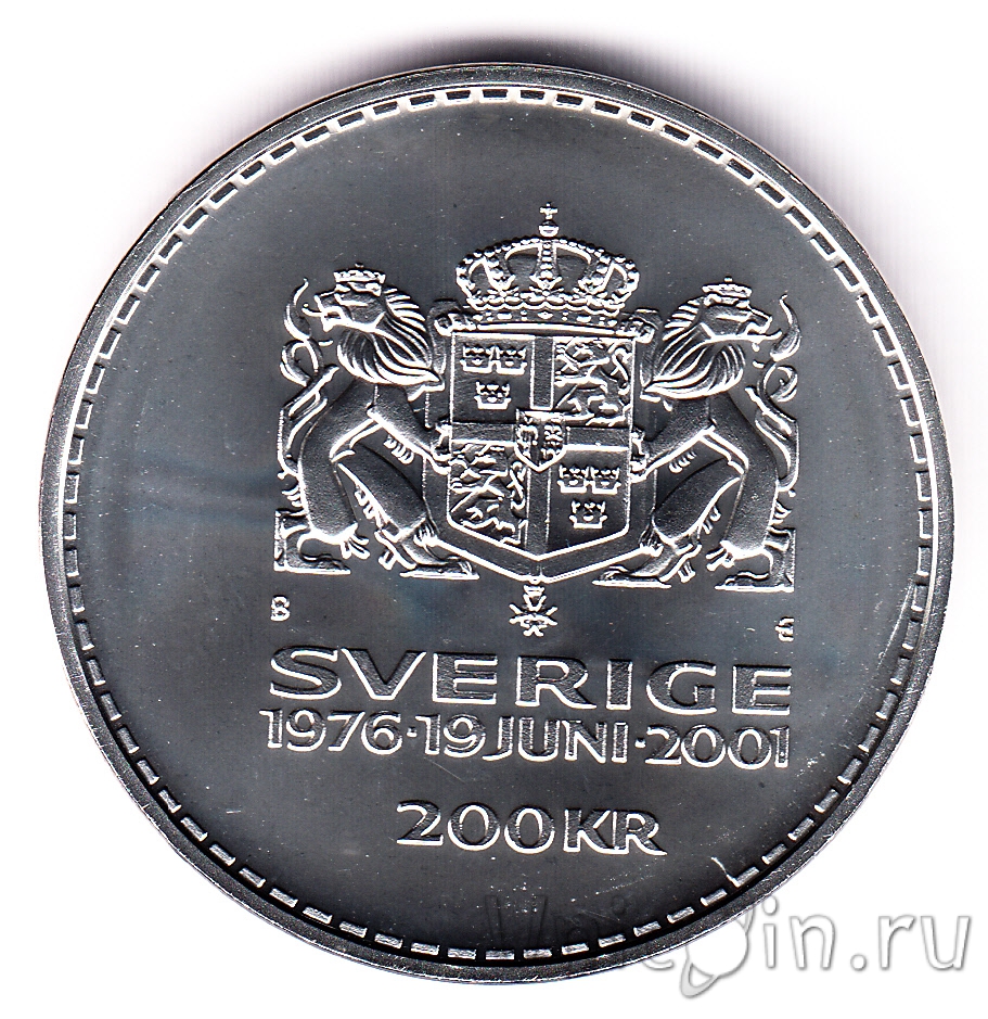 Швеция 200 крон 2001 г. 25 лет Свадьбы