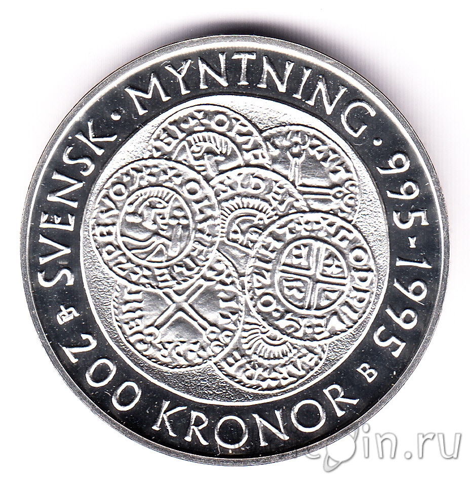 Швеция 200 крон 1995 1000 лет монетам Швеции