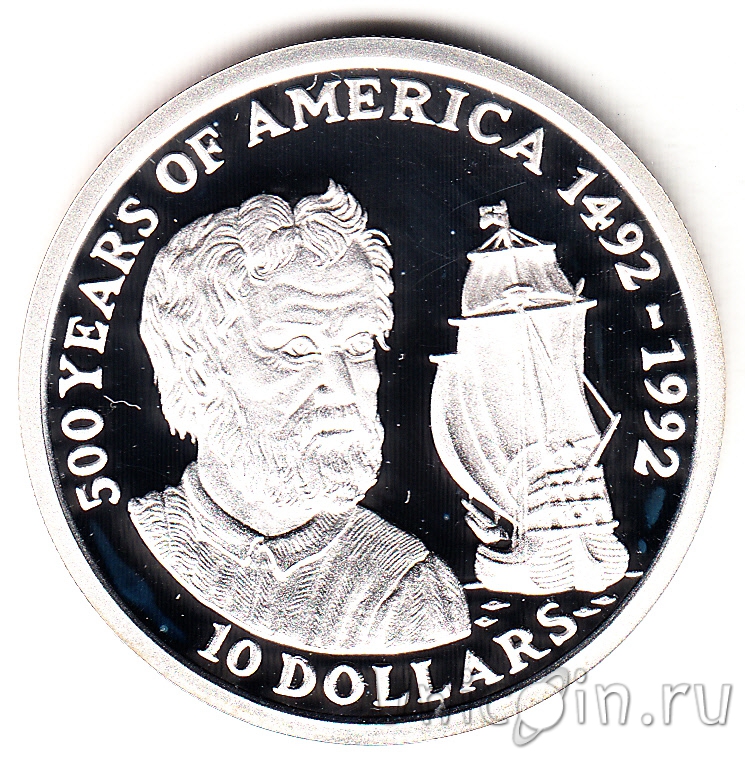 Острова Кука 10 долларов 1990 500 лет Открытия Америки