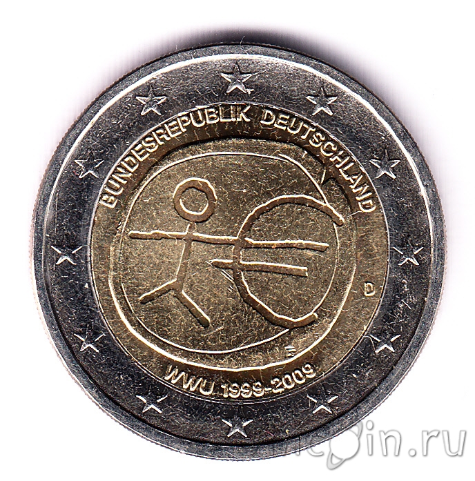Германия 2 евро 2009 г. D (Монетный двор: Мюнхен) - 10 лет евро