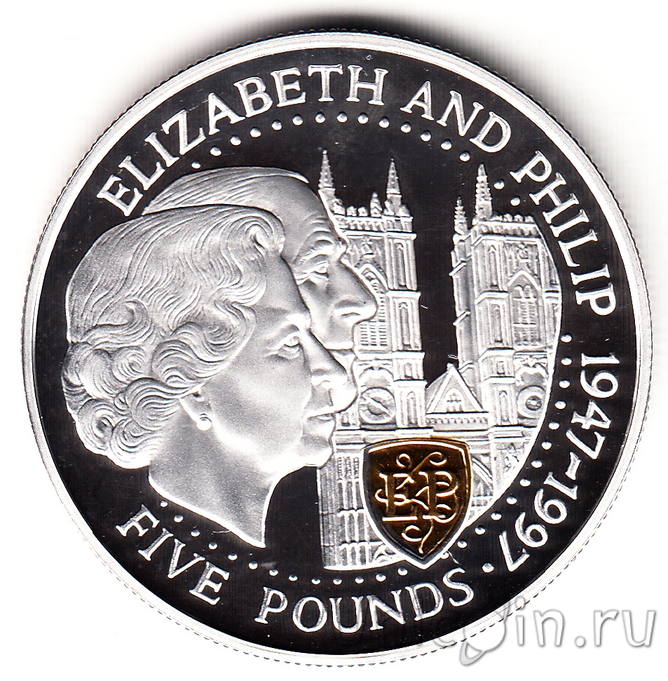Гернси 5 фунтов 1997 г. 50 лет свадьбе Королевы Елизаветы II и Принца Филиппа