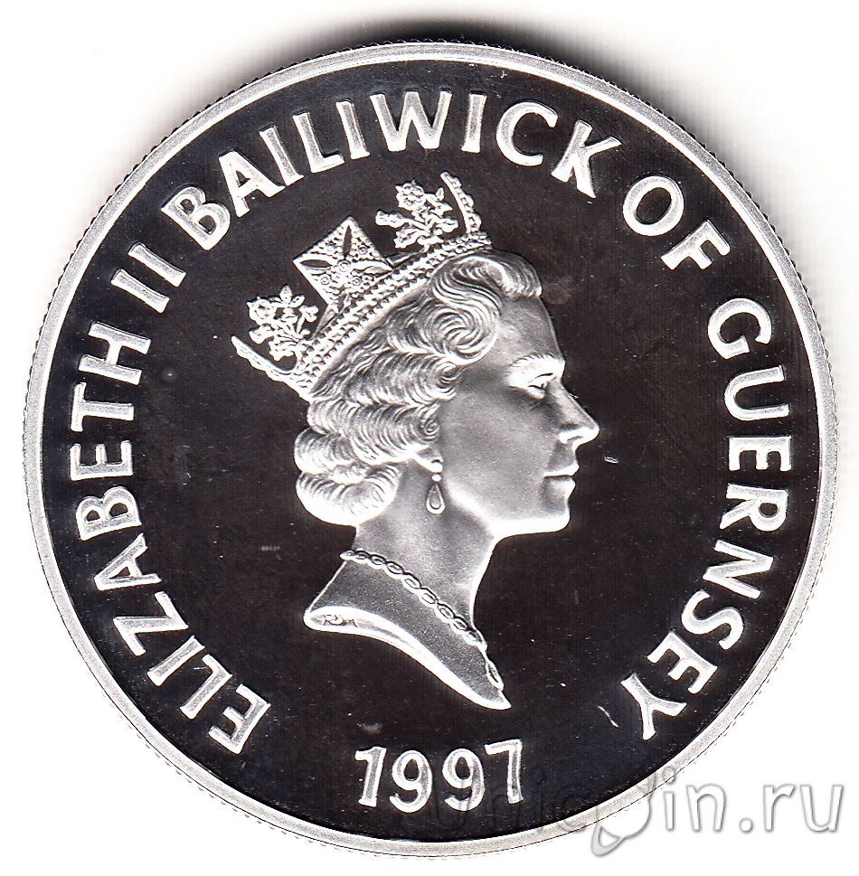 Гернси 5 фунтов 1997 Золотая свадьба (серебро)