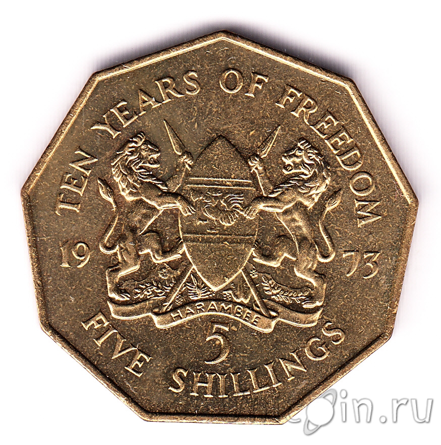 Кения 5 шиллингов 1973 г. 10 лет Независимости