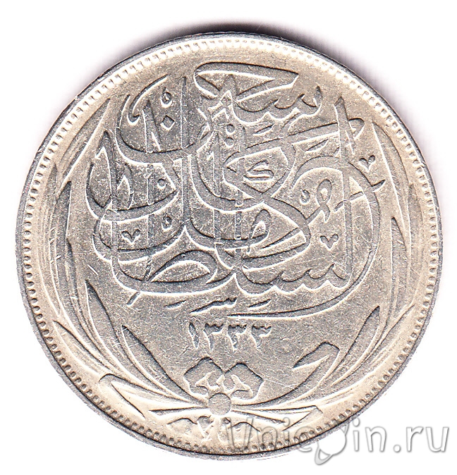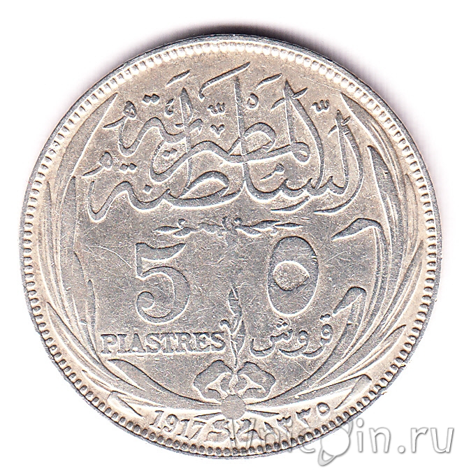Египет 5 пиастров 1917 г. Отметка монетного двора "H" - Бирмингем