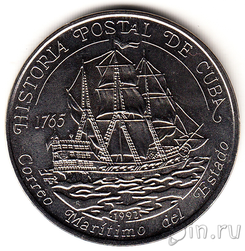 Куба 1 песо 1992 г. История кубинской почты - почтовый корабль