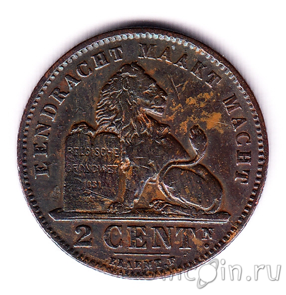 Бельгия 2 сантима 1911 г. Надпись на голландском - 'ALBERT KONING DER BELGEN'
