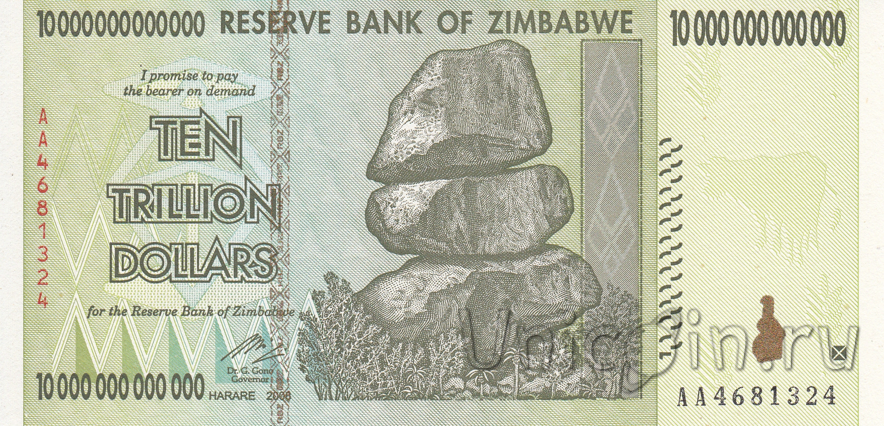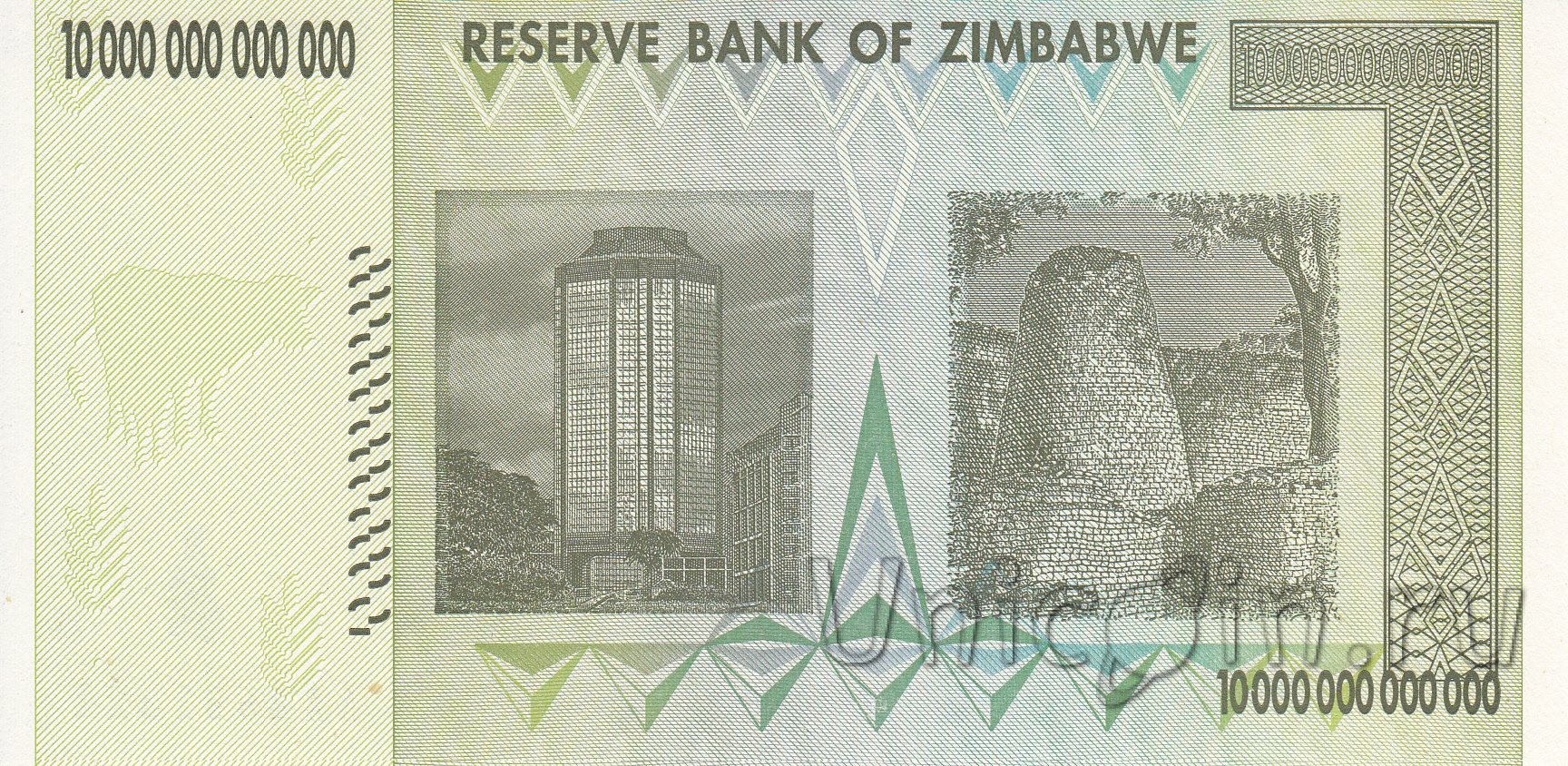 Банкнота. Зимбабве 10 000 000 000 000 (десять триллионов) долларов 2008 г.