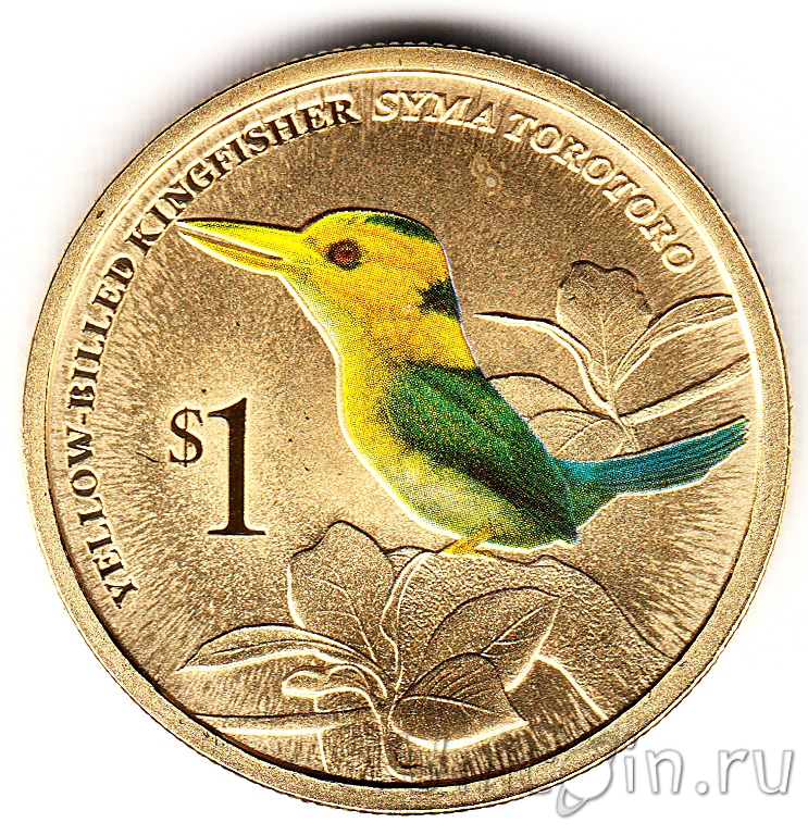 Тувалу 1 доллар 2013 г. Желтоклювый зимородок (Syma torotoro)
