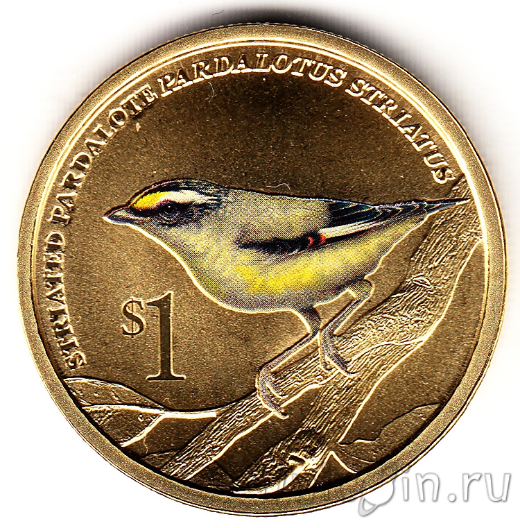 Тувалу 1 доллар 2013 г. Австралийские Водяные Птицы - Полосатая радужная птица (Pardalotus striatus)