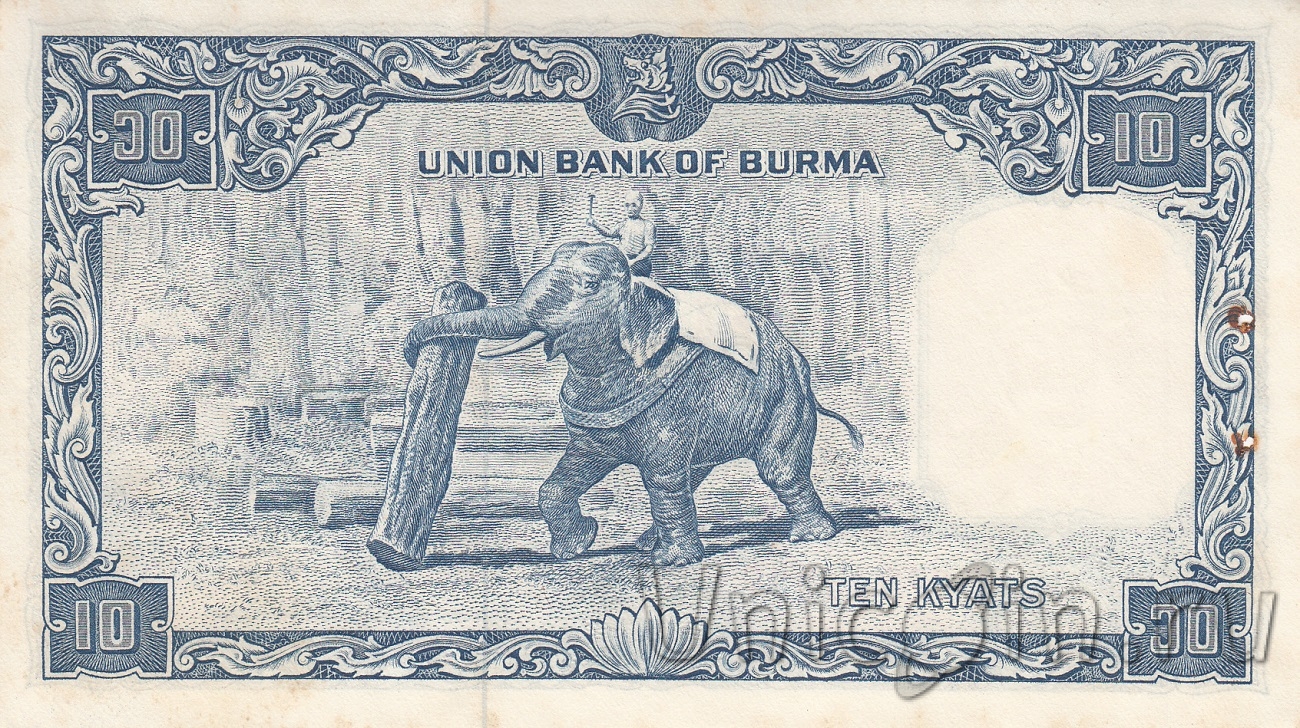 Бирма 10 кьят 1958 г. Отверстия от степлера!