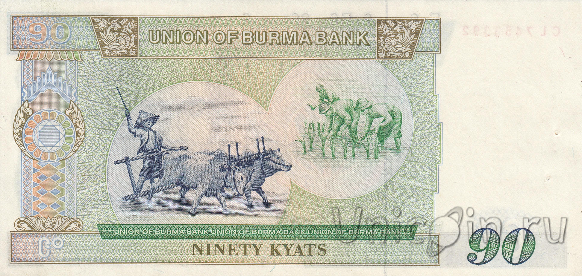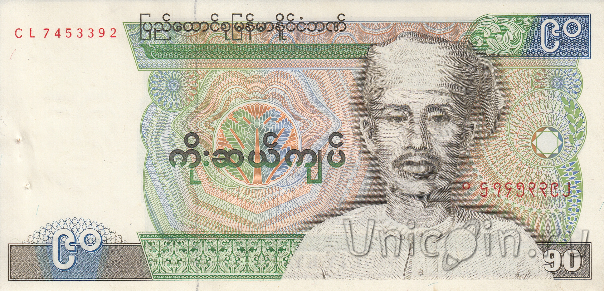 Бирма 90 кьят 1987 г. Отверстия от степлера!!