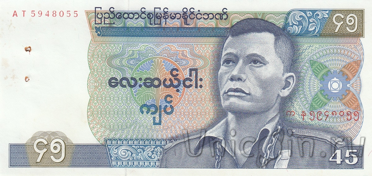 Бирма 45 кьят 1987 г. Отверстия от степлера!!