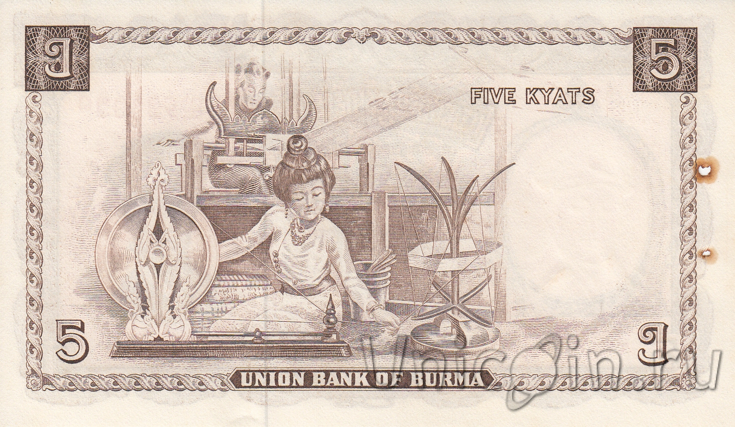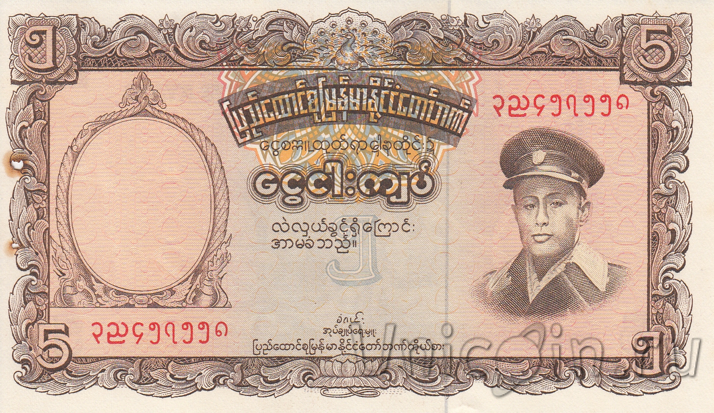 Бирма 5 кьят 1958 г. Отверстия от степлера!!