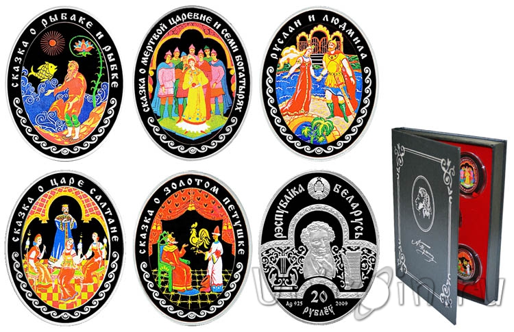 Беларусь набор 5 монет 20 рублей 2009 Сказки А.С. Пушкина
