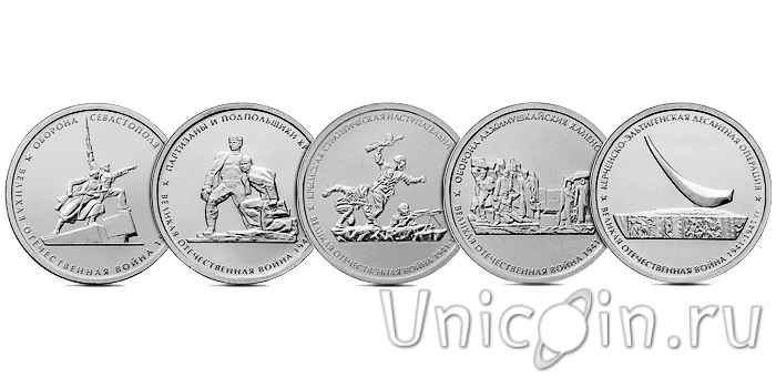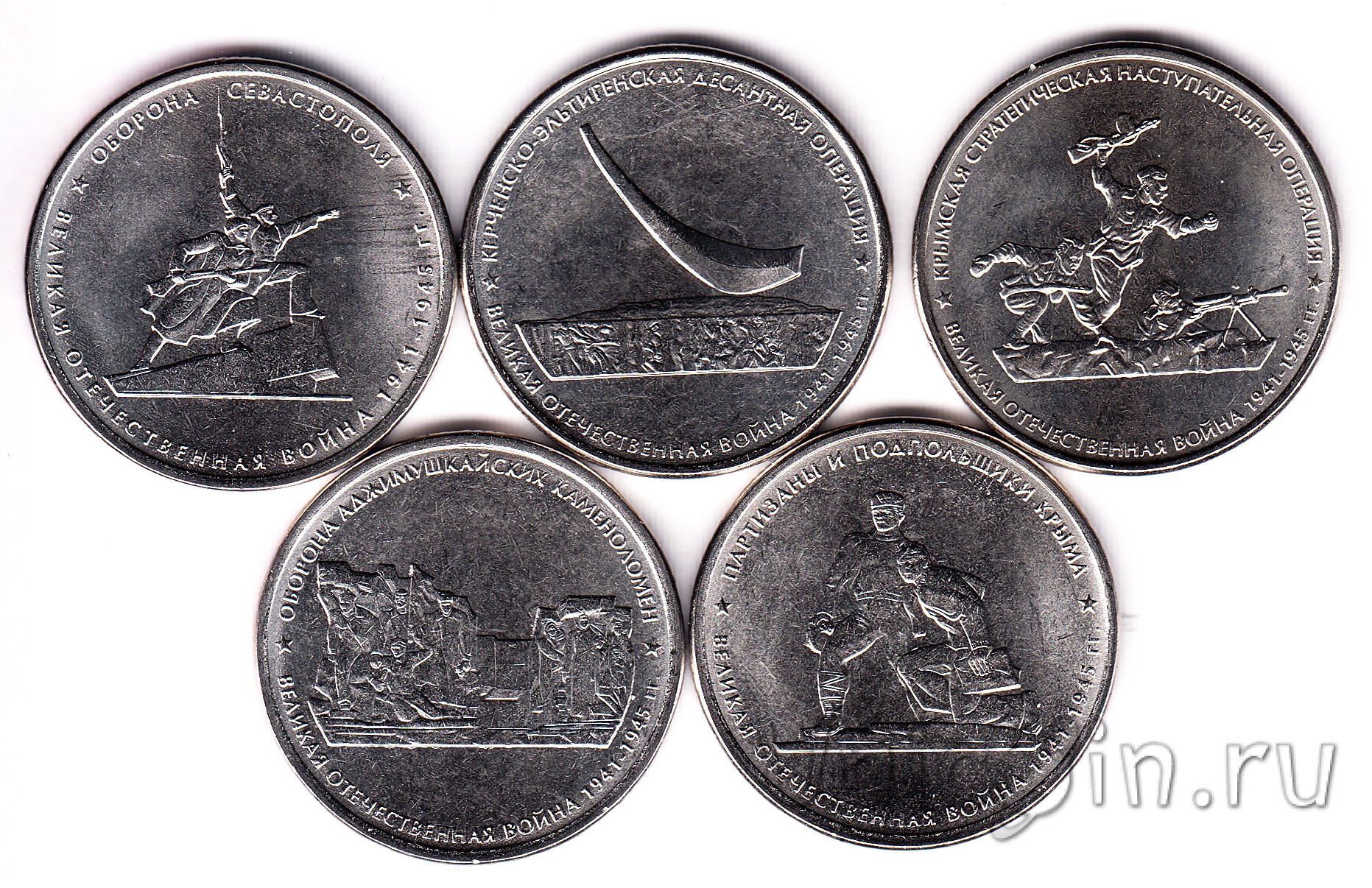 Россия набор 5 монет 5 рублей 2015 г. Сражения на Крымском полуострове