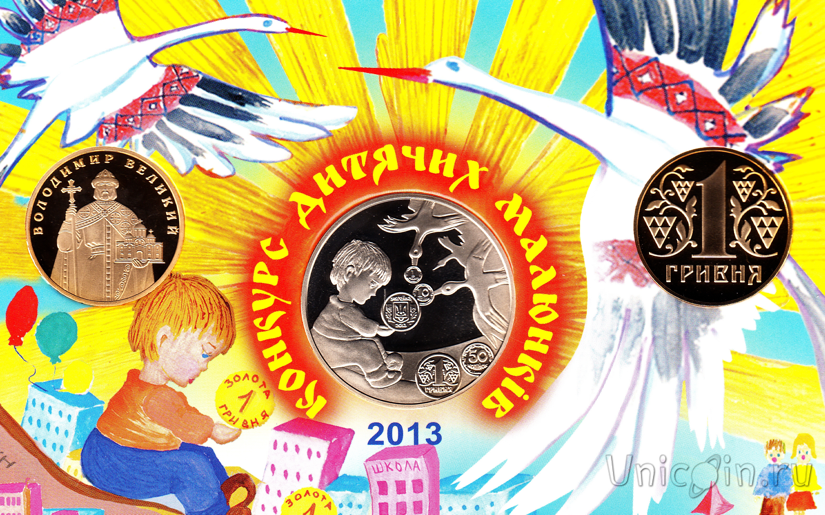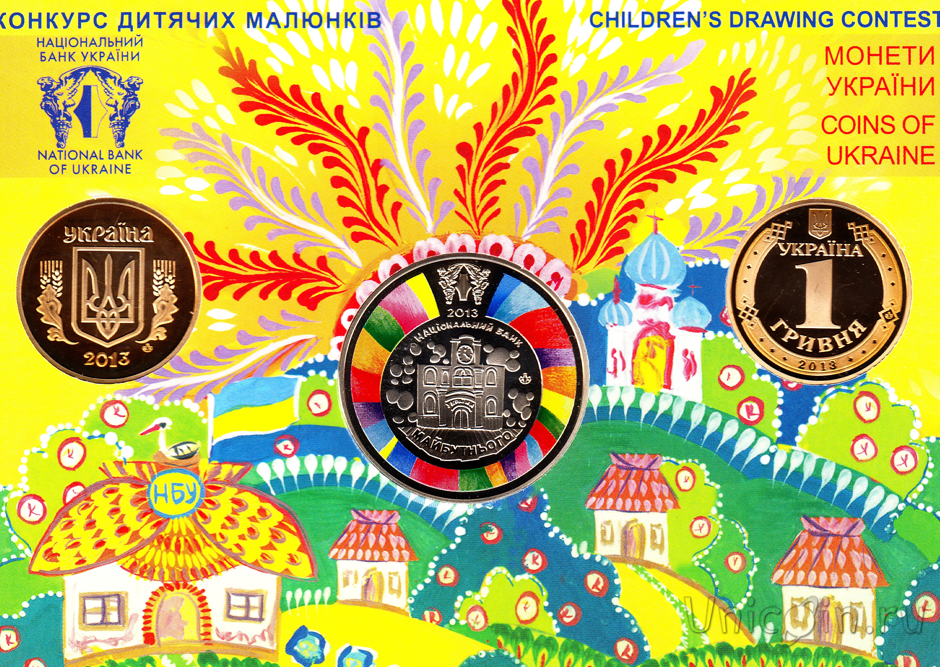 Украина набор 2 монеты 2013 г. и жетон Конкурс детских рисунков