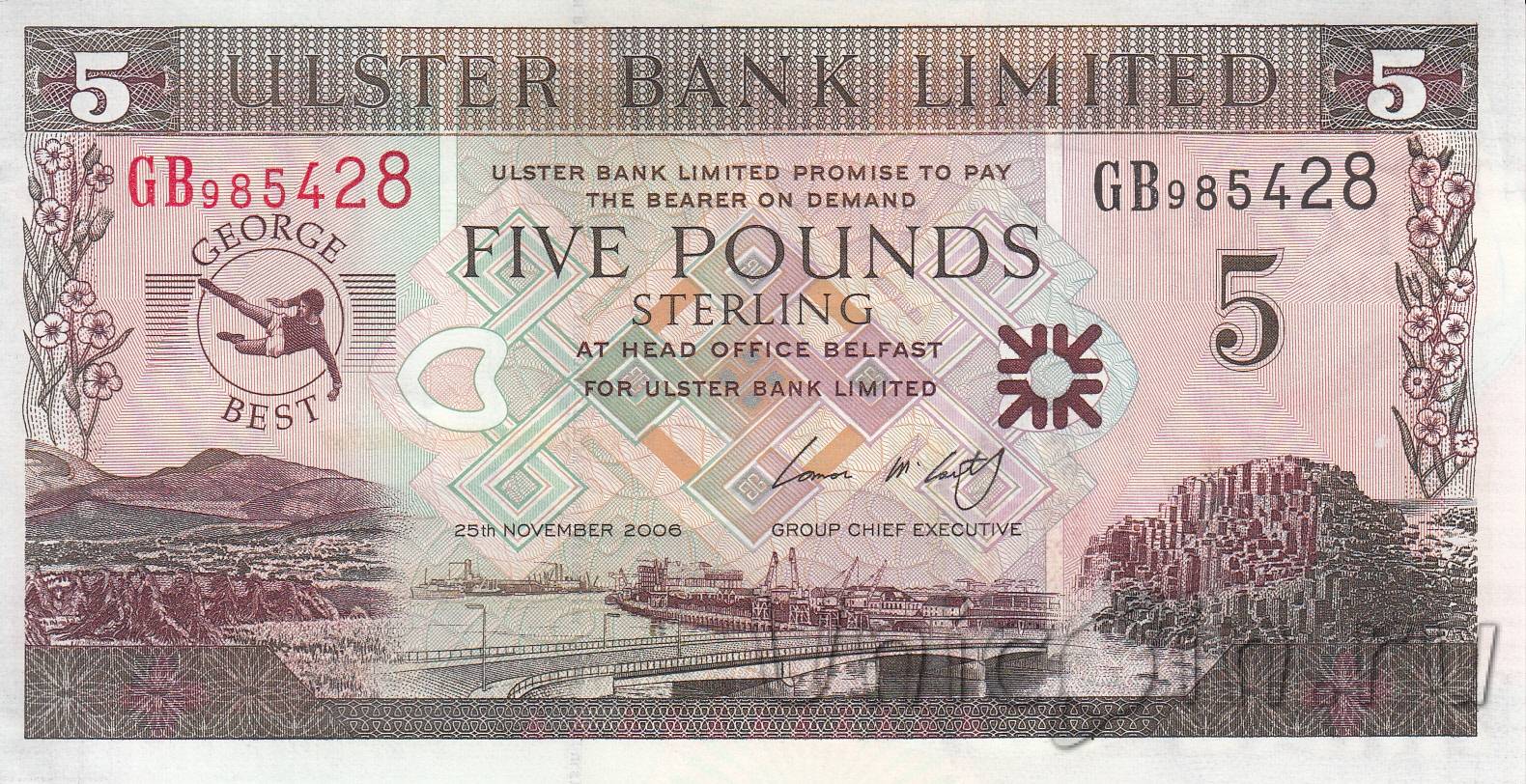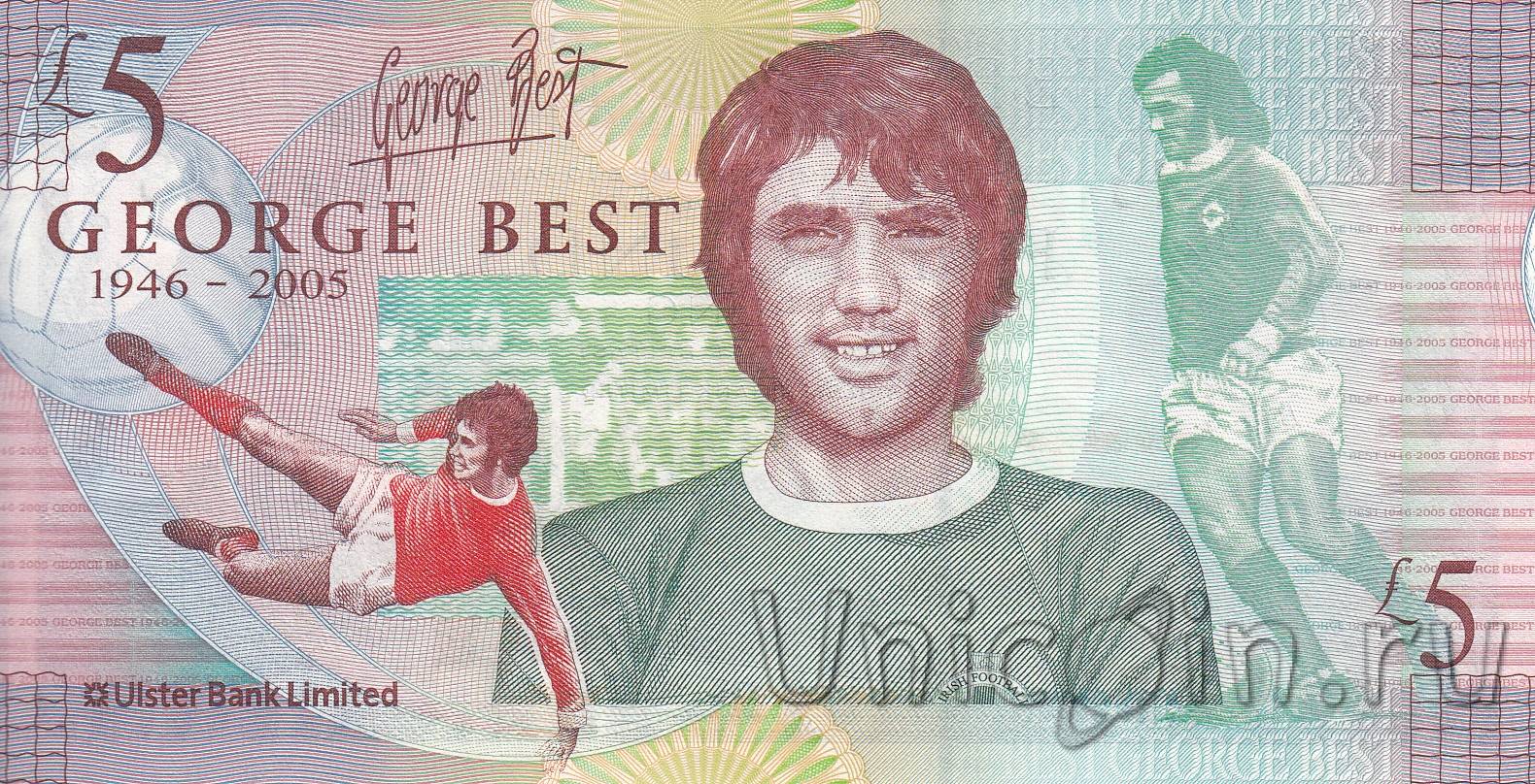 Банк Ольстера 5 фунтов 2005 г. Футболист Джордж Бест