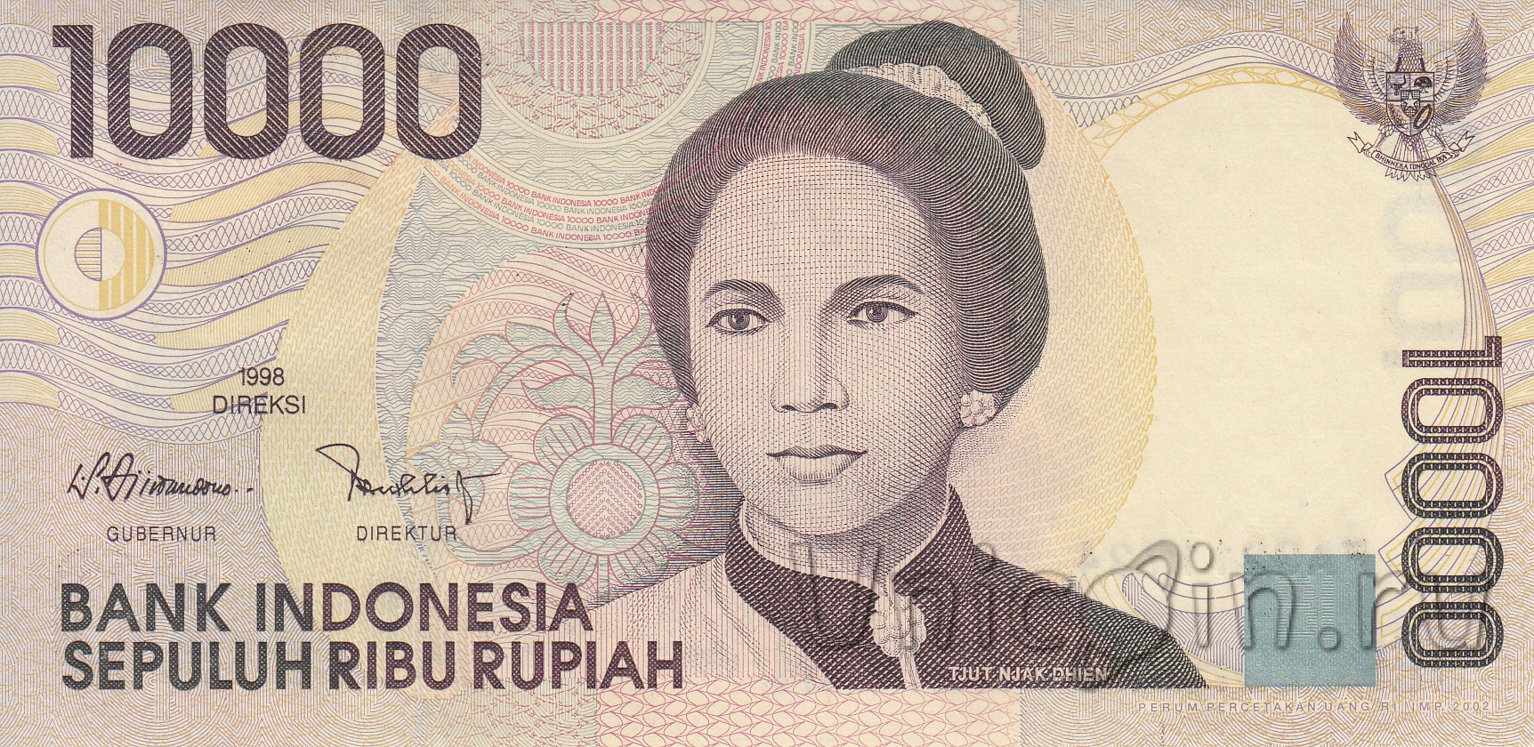 Индонезия 10000 рупий 1998 г. Год 1999 указан в правом нижнем углу банкноты