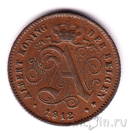 Бельгия 1 сантим 1912 г. Надпись на голландском - 'ALBERT KONING DER BELGEN'