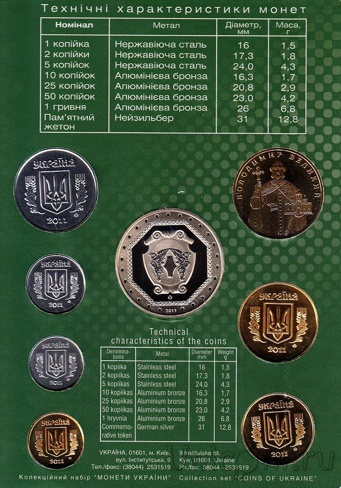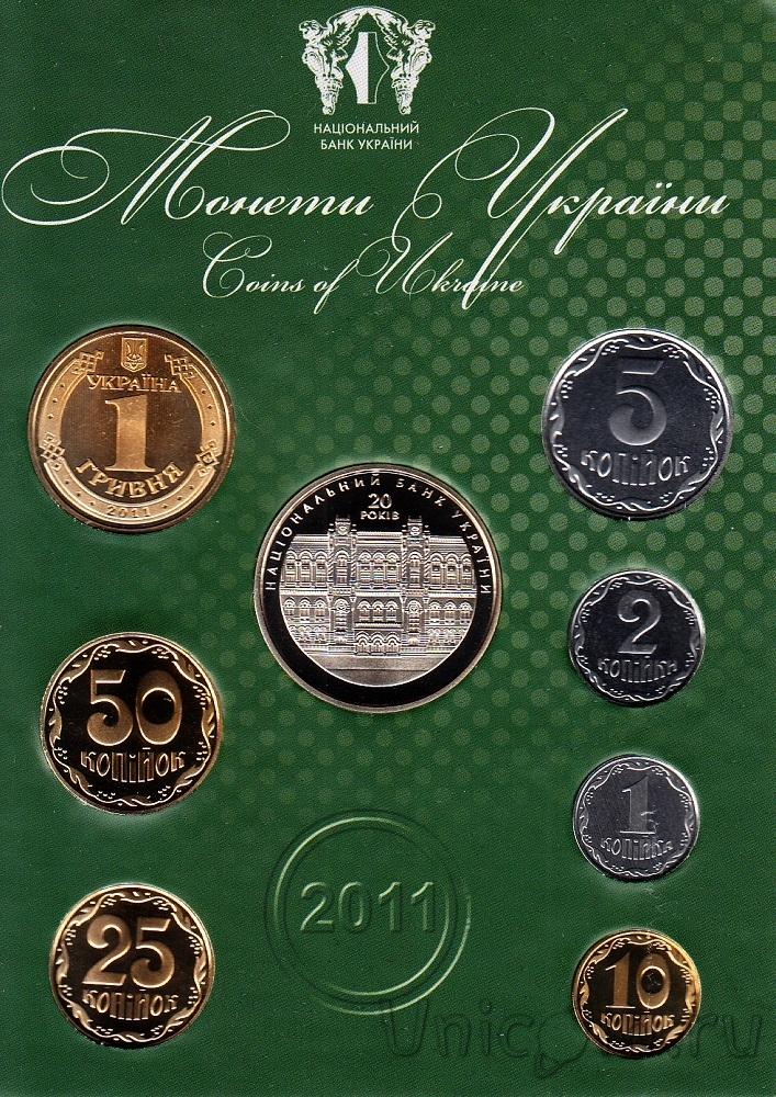 Украина набор 7 монет и жетон 2011 20 лет Национальному Банку