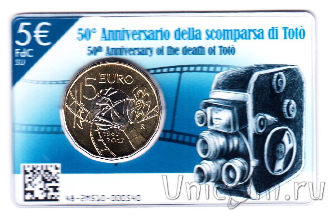 Италия 5 евро 2017 г. Итальянский комик Тото