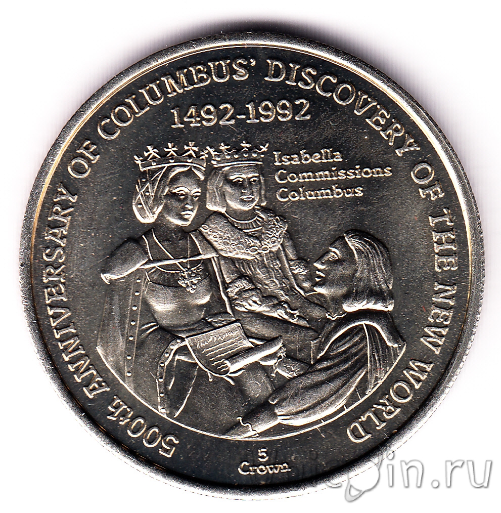 Тёркс и Кайкос 5 крон 1991 г. 500 лет экспедиции Христофора Колумба