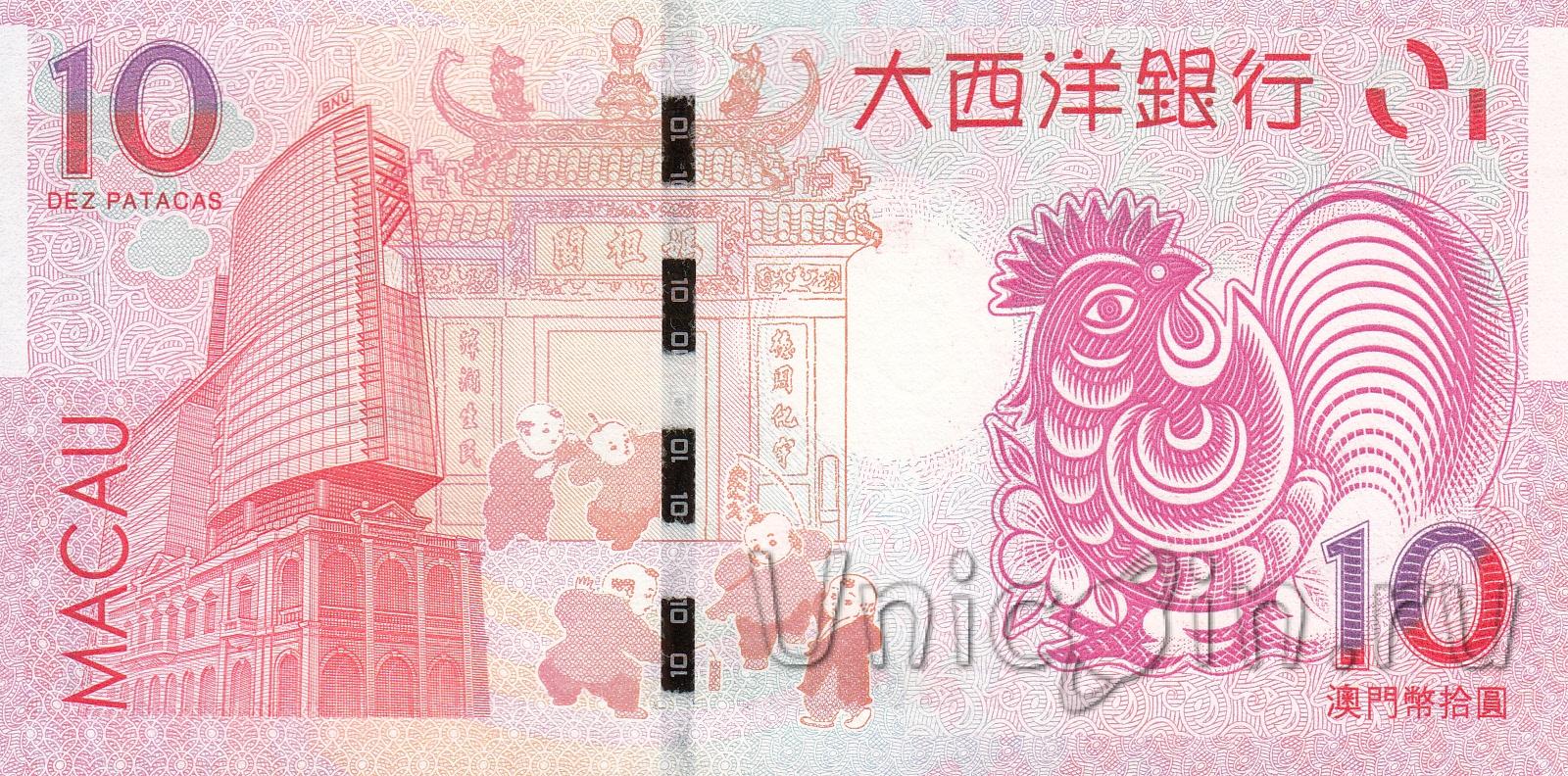 Макао 10 патак 2017 г. Год петуха (Banko Nacional Ultramarino)