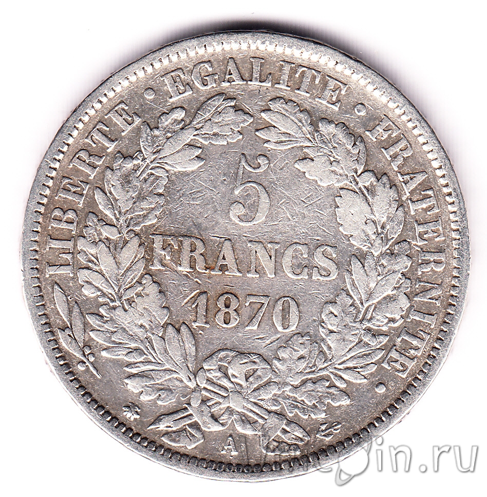Франция 5 франков 1870 г. LIBERTE·EGALITE·FRATERNITE