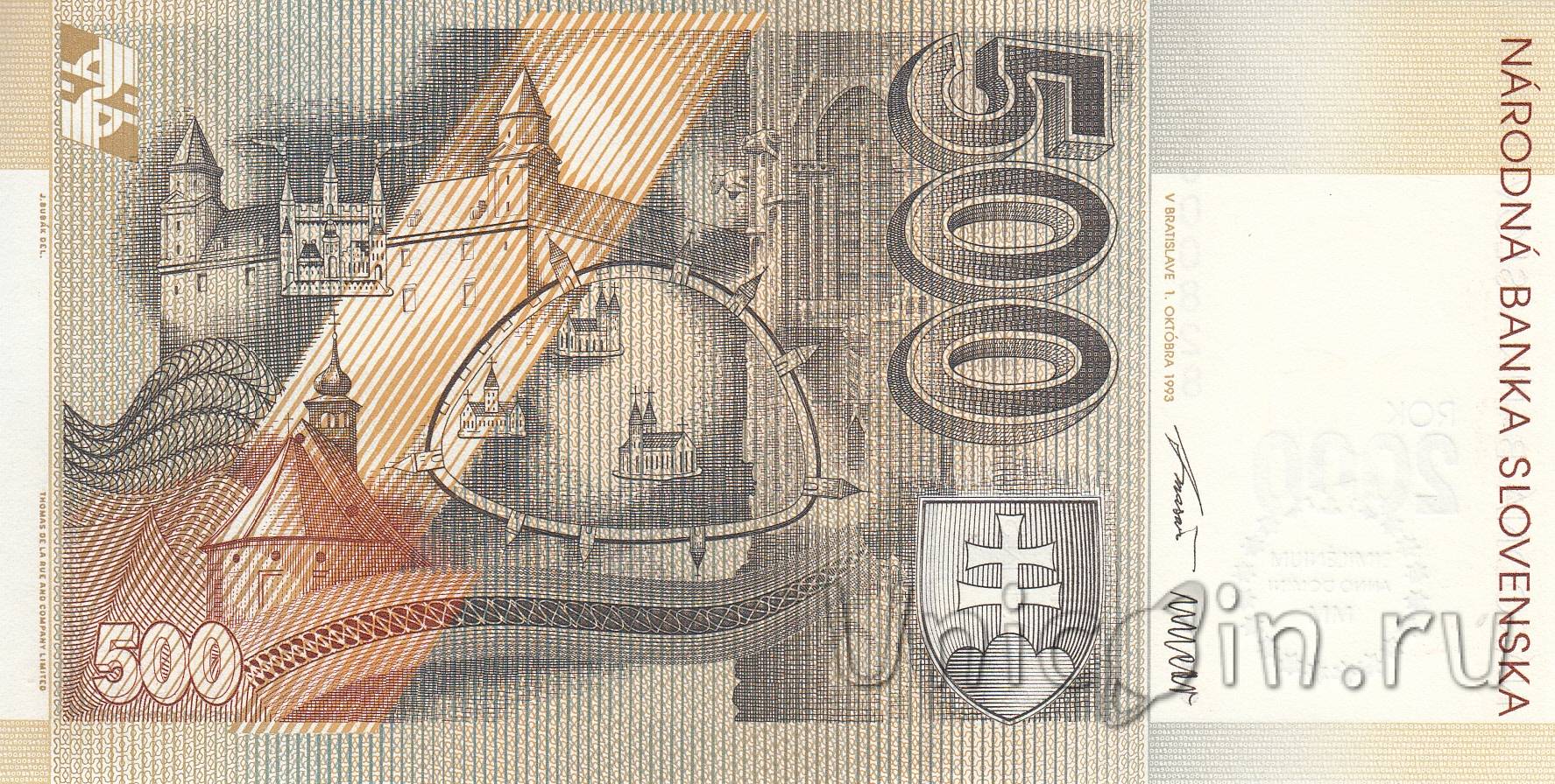 Словакия 500 крон 1993 г. Миллениум. Тираж 67.200 шт