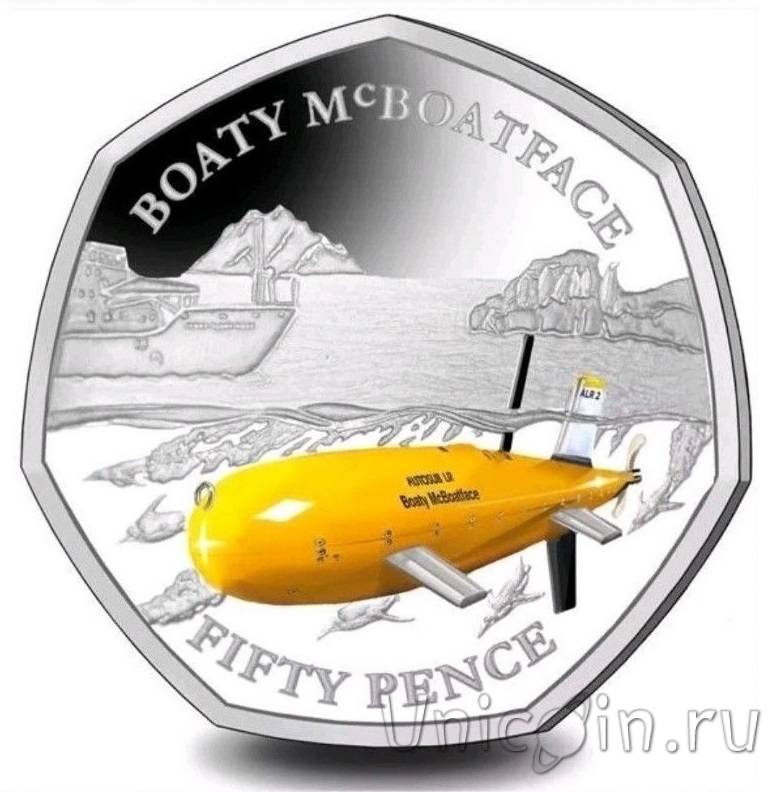 Британские Антарктические территории 50 пенсов 2018 г. Корабль Boaty McBoatface