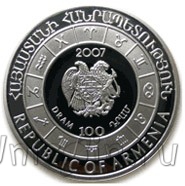 Монета серебряная. Армения 100 драм 2007 Водолей