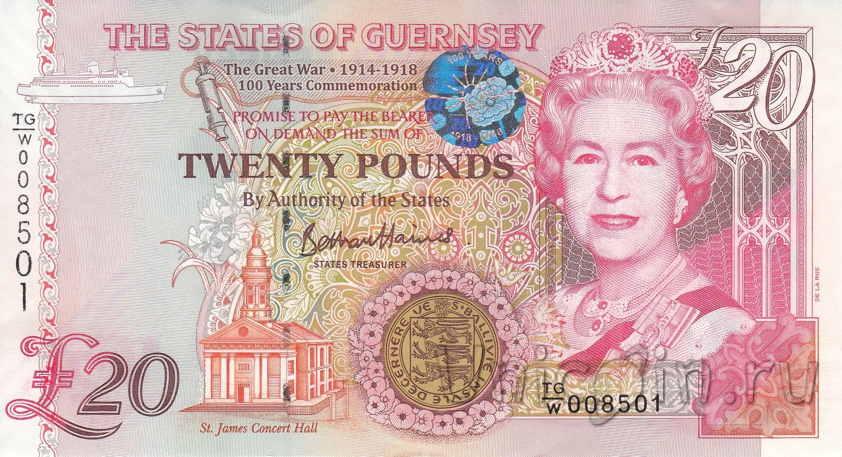 Гернси 20 фунтов 2018 г. Окончание Первой мировой войны