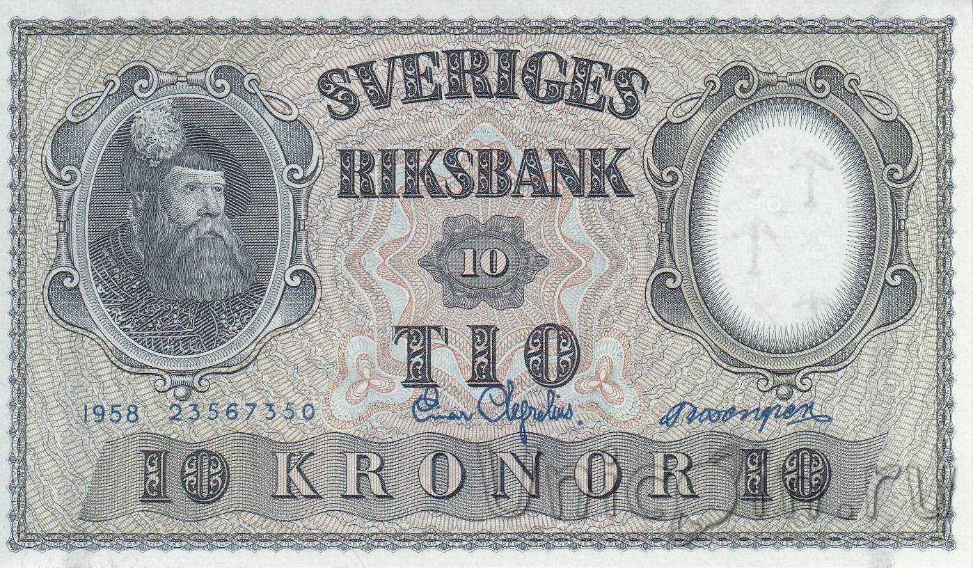 Швеция 10 крон 1958 г. В наличии разные подписи!