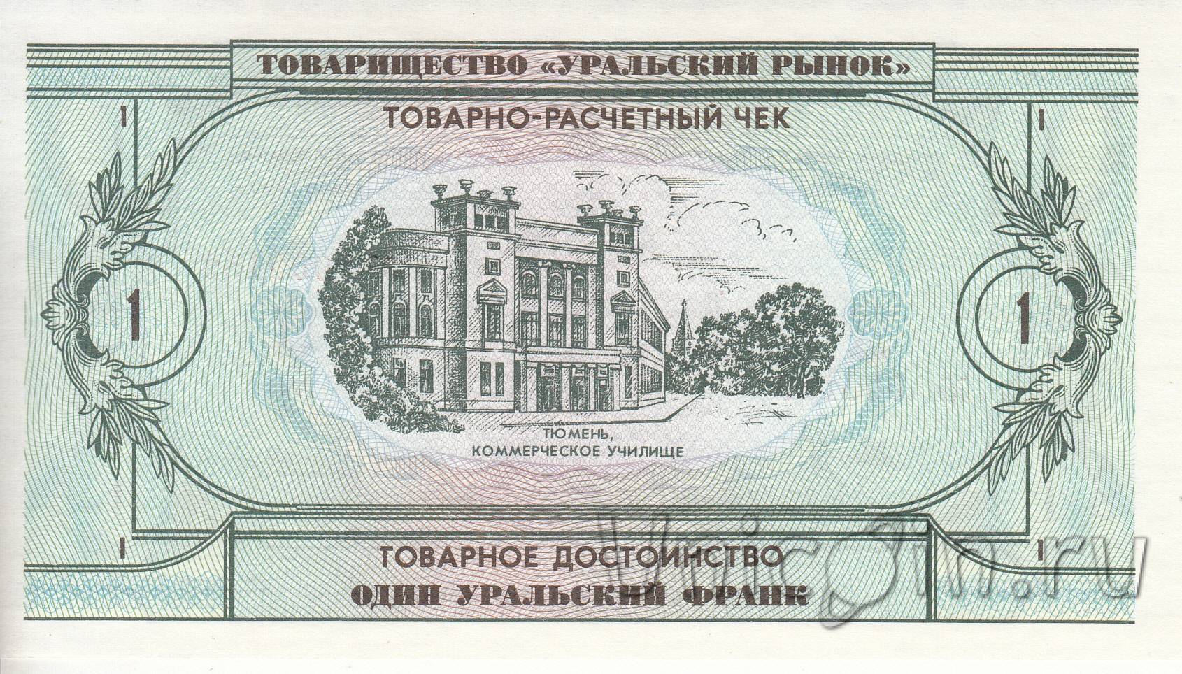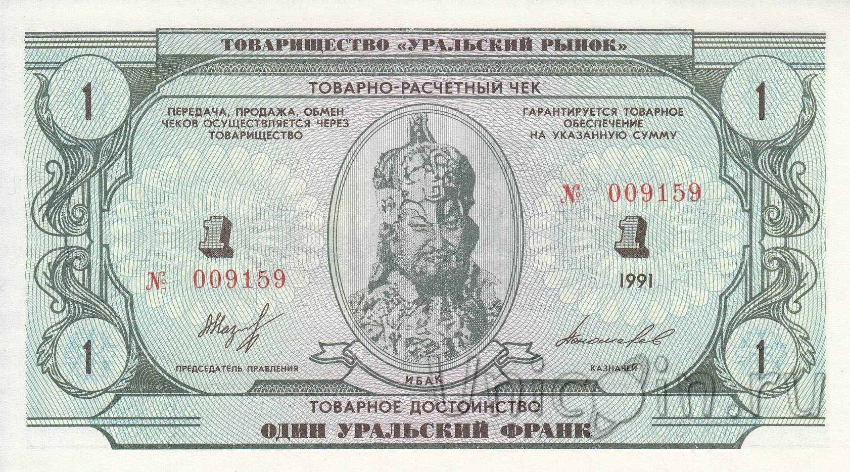 Банкнота 1 уральский франк 1991 г. - Хан Ибак