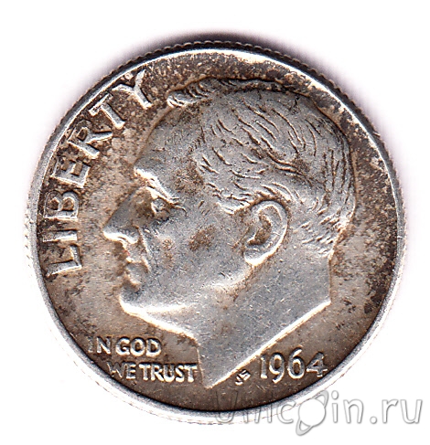 США 10 центов 1964 г. Без отметки монетного двора = Филадельфия