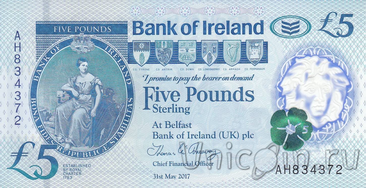 Ирландия (Банк Ирландии) 5 фунтов 2017 (2019)