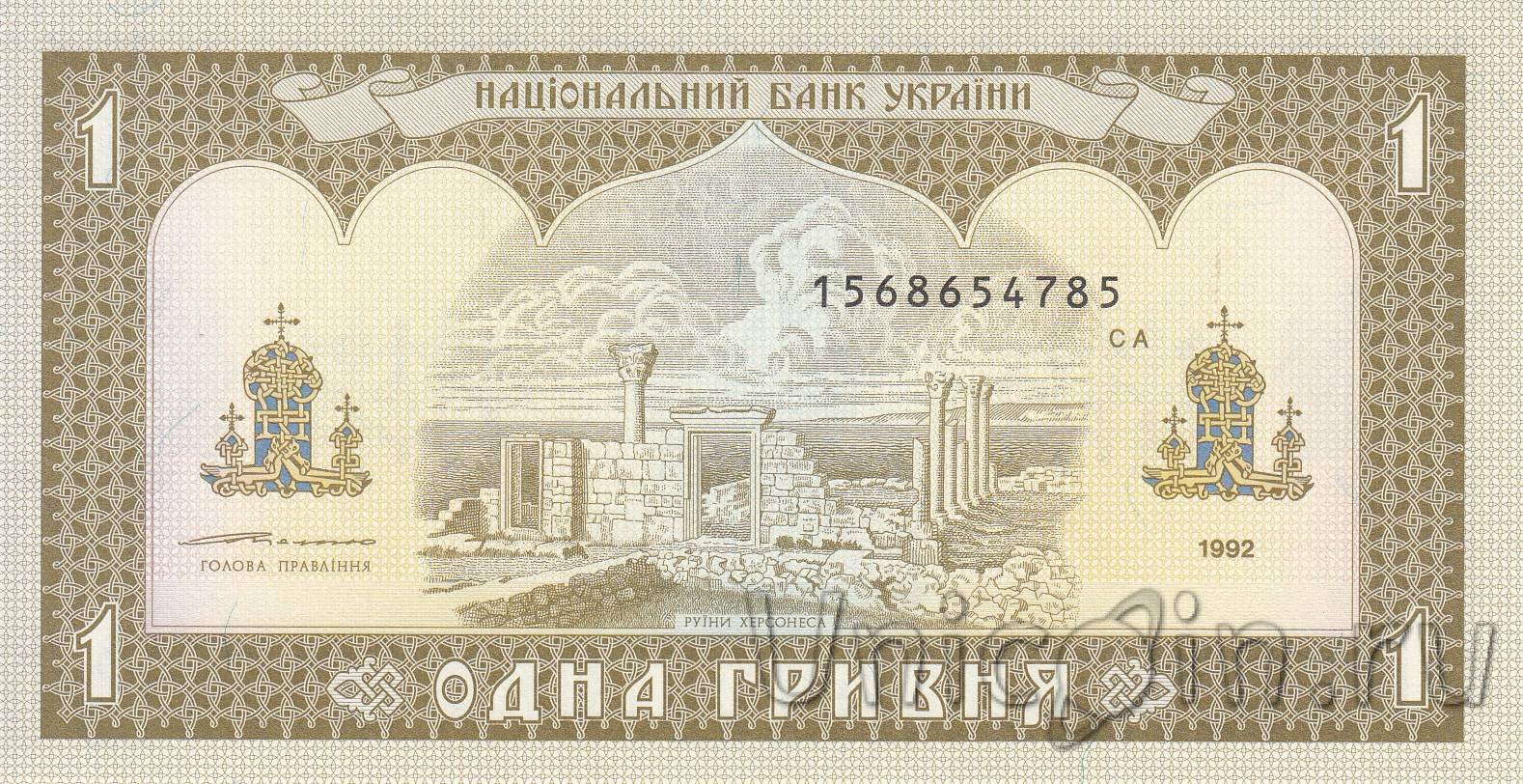 Украина 1 гривна 1992 г. (подпись Ющенко)