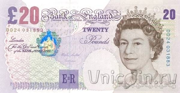 Великобритания 20 фунтов 1999-2006 (подпись M. Lowther)