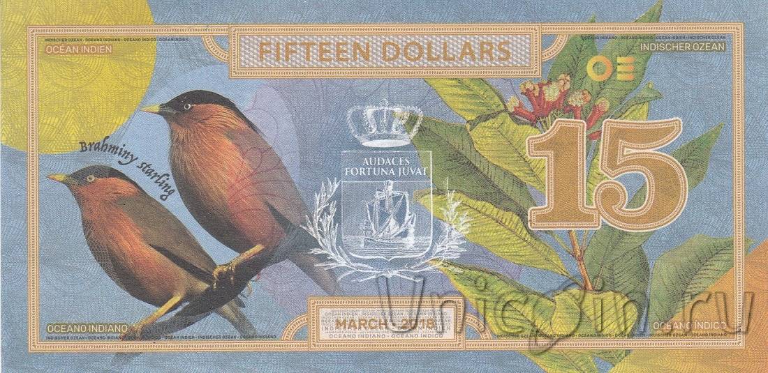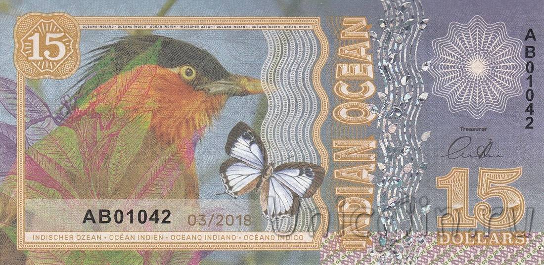 Сувенирная банкнота - Индийский океан 15 долларов 2018 г.