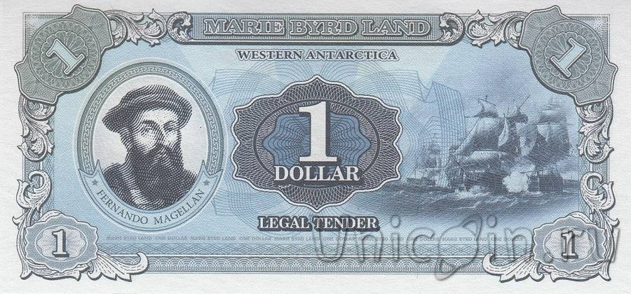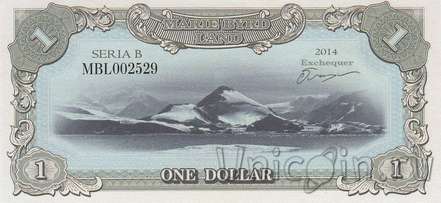 Сувенирная банкнота - Земля Мэри Бэрд 1 доллар 2014 г.
