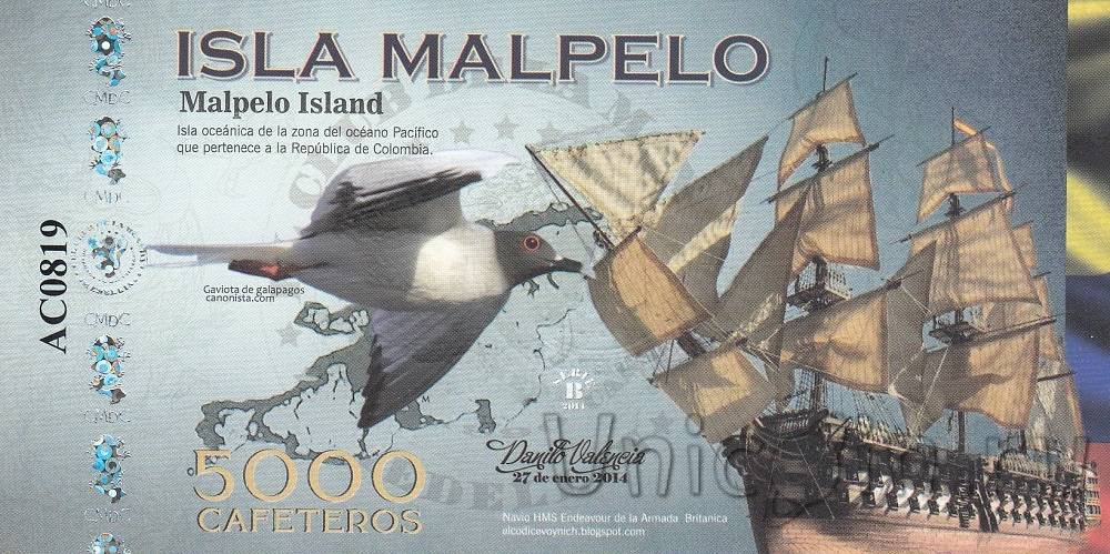Сувенирная банкнота - Остров Мальпело 5000 кафетерос 2014 г.