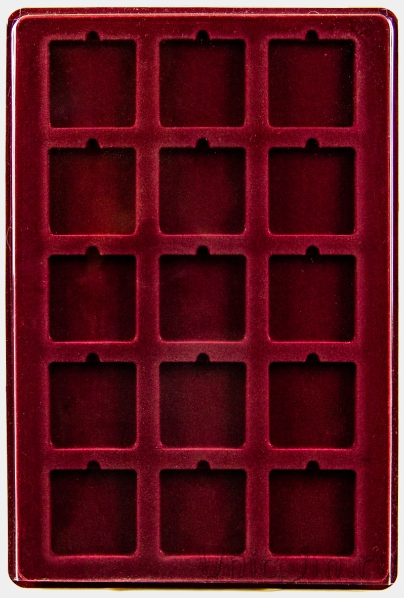 | Описание: | Планшет на 15 квадратных ячеек для холдеров с прозрачной пластиковой крышкой. Материал: ПВХ и бархат (флок). |