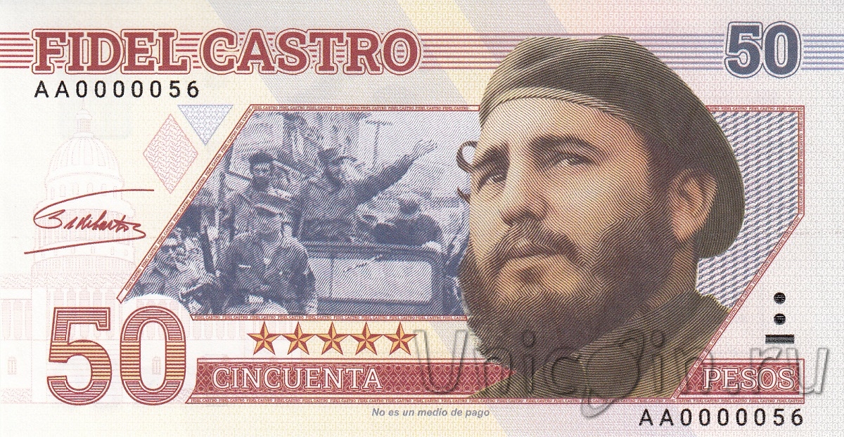 Коллекционная бакнота - 50 песо - Фидель Кастро