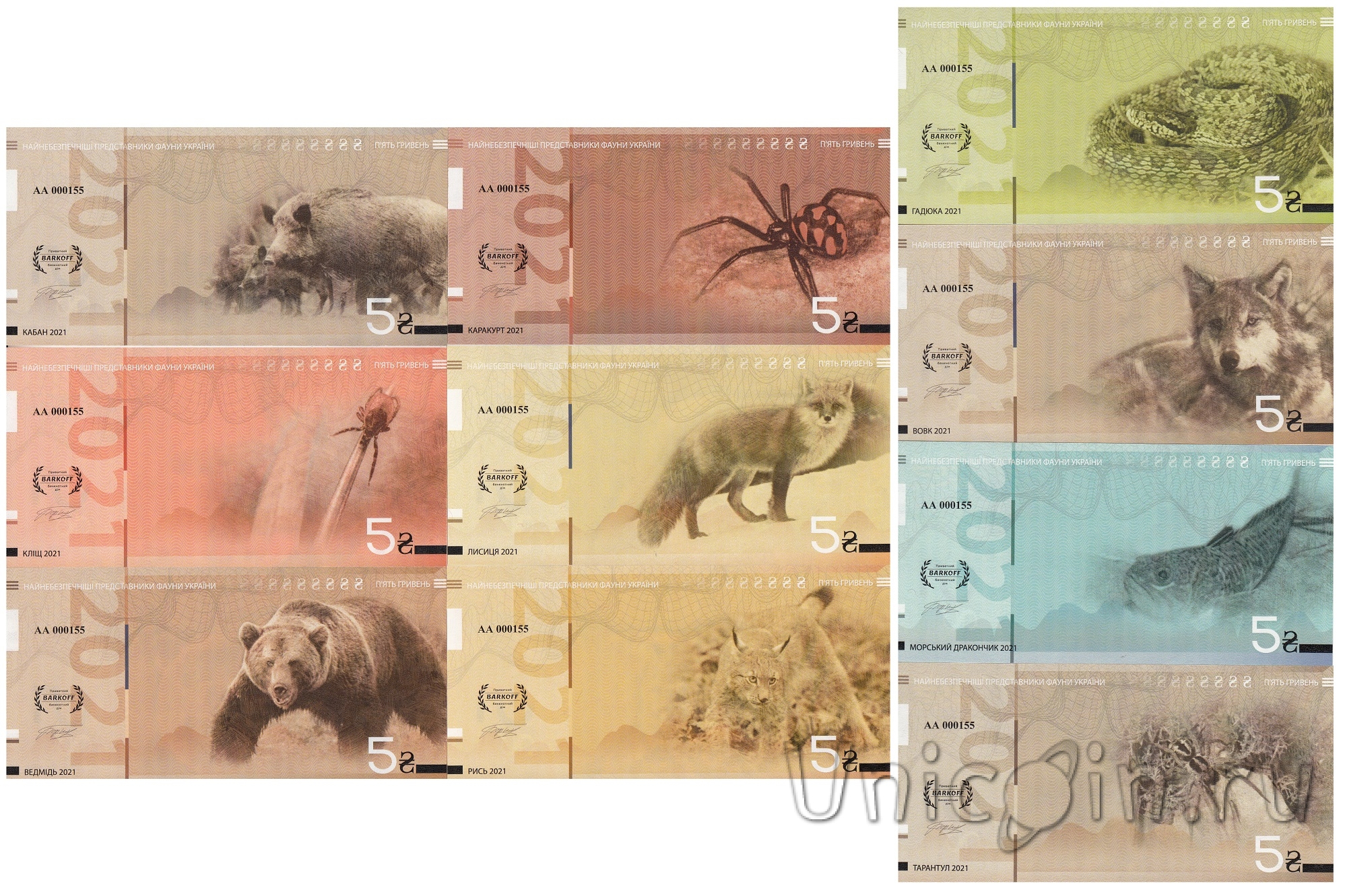 Украина - набор из 10 банкнот - Опасные представители фауны