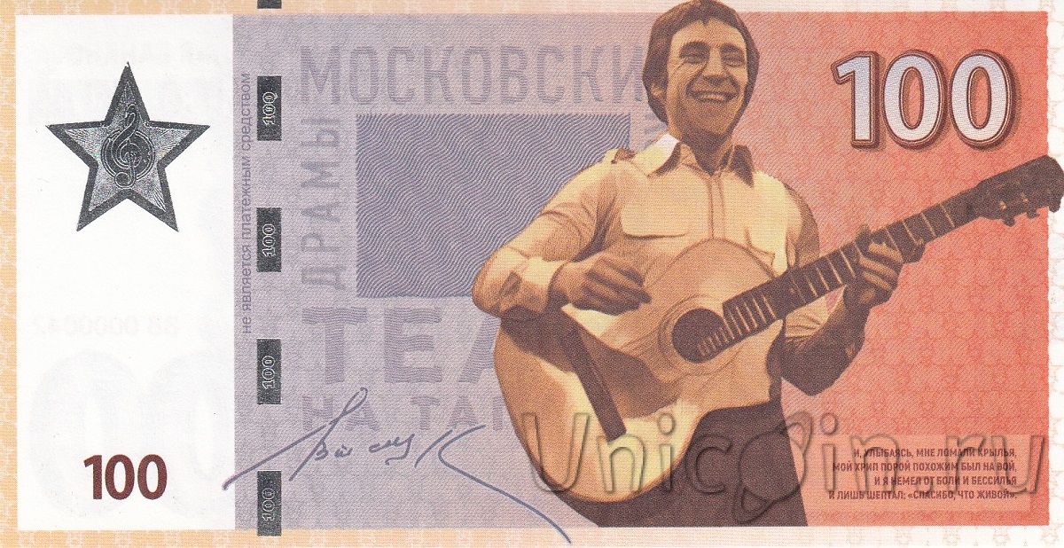 Коллекционная банкнота - 100 - Владимир Высоцкий