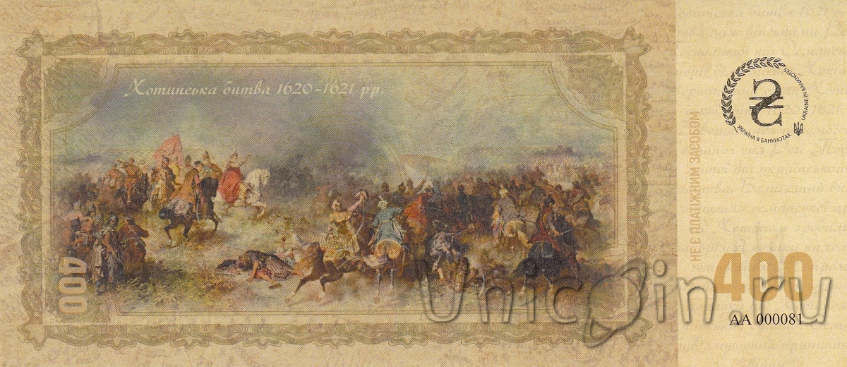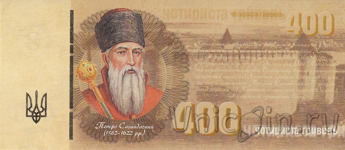 Украина - Сувенирная банкнота 400 гривен 2021 Пётр Сагайдачный