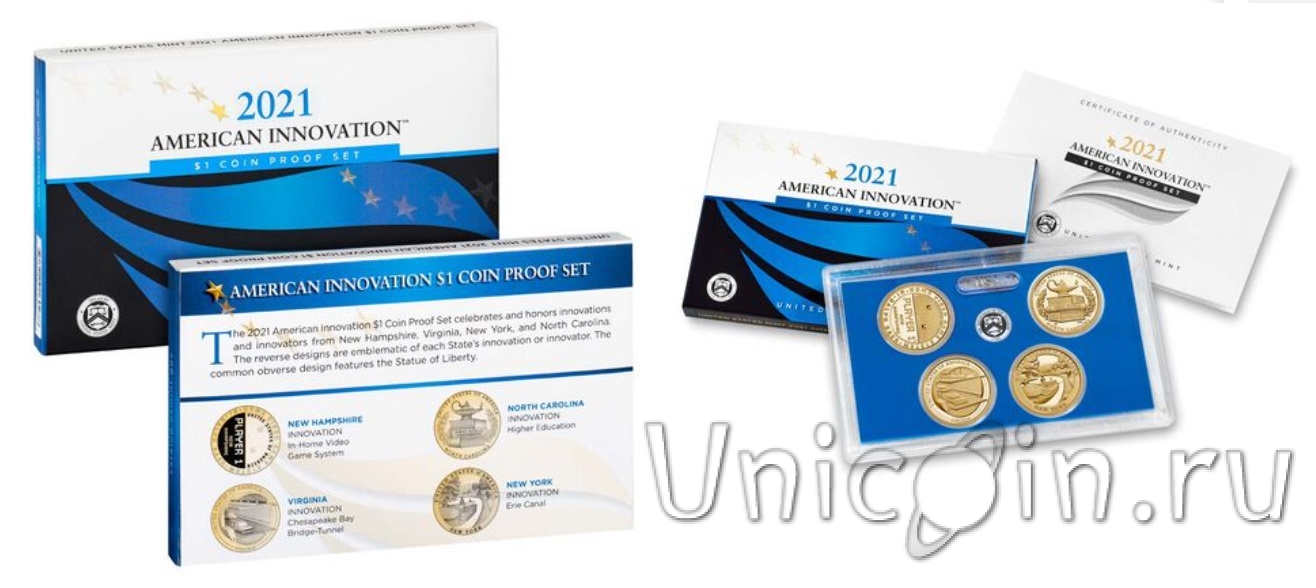 США набор 4 монеты 1 доллар 2021 г. Американские инновации (proof)