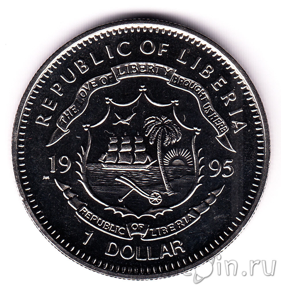Либерия 1 доллар 1995 г. Корабль Мейфлауэр
